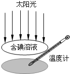 温度计显示的温度明显上升,红外线热效应明显,故说明含碘的二硫化碳溶液对于红外线是透明的;