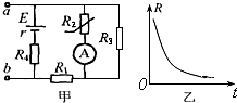 5、选择题 某兴趣小组对一火灾报警装置的部分电路进行探究,其电路如图所示,其中R2是半导体热敏电阻,它的电阻R随温度t变化关系如图乙所示.当R2所在处出现火情时,通过电流表的电流I和a、b两端电压U与出现火情前相比( )