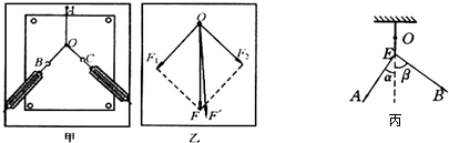 4、填空题 在“验证力的平行四边形定则”的实验情况如图甲所示,其中A为固定橡皮筋的图钉,O为橡皮筋与细绳的结点,OB和OC为细绳.图乙是在白纸上根据实验结果画出的图.