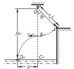 3、计算题 如图所示,质量m=50kg的运动员(可视为质点),在河岸上A点紧握一根长L=5.0m的不可伸长的轻绳,轻绳另一端系在距离水面高H=10.0m的O点,此时轻绳与竖直方向的夹角为θ=37°,C点是位于O点正下方水面上的一点,距离C点x=5.0m处的D点有一只救生圈,O、A、C、D各点均在同一竖直面内。若运动员抓紧绳端点,从台阶上A点沿垂直于轻绳斜向下以一定初速度跃出,当摆到O点正下方的B点时松开手,最终恰能落在救生圈内。(sin37°=0.6,cos37°=0.8,g=10m/s2)求: