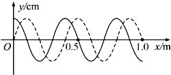4、选择题 一列简谐横波在某时刻的波形图如图中的实线所示,经△t=0.02s后的波形如图中虚线所示,则该波的速度v和频率f可能是( )