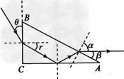 故光线在AC界面发生全反射再经AB界面折射若出射角为α,则