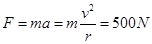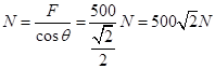 ,而乘客的重力G与合力F大小相等,那么N与向心力夹角为450,则火车给的作用力为: