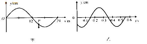 本题解析:从甲图的波动图像可知,质点P向y轴负方向运动说明波沿x轴负方向传播,从图中还可在波长为24m,周期为0.4秒,可得到波速为60m/s;所以答案选A