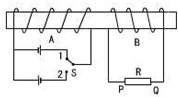 ![]() 参考答案:当单刀双掷开关原来接在1位置,线圈A左端是S极,右端是N极.现在它从1打向2,则线圈A左端是N极,右端是S极.导致向右穿过线圈B的磁场先变小,后向左穿过线圈B的磁场变大,则由楞次定律可得:感应电流方向始终由Q到P; 本题解析: 本题难度:简单 4、选择题 如图所示,在磁感应强度大小为B、方向竖直向上的匀强磁场中,有一质量为m、阻值为R的闭合矩形金属线框abcd用绝缘轻质细杆悬挂在O点,并可绕O点摆动。金属线框从右侧某一位置静止开始释放,在摆动到左侧最高点的过程中,细杆和金属线框平面始终处于同一平面,且垂直纸面。则线框中感应电流的方向是 参考答案:B 本题解析: 本题难度:一般 5、选择题 如图电路中要使电流计G中的电流方向如图所示,则导轨上的金属棒AB 的运动必须是 ?(?) 参考答案:AD 本题解析:当导体棒向左切割磁感线时,由楞次定律可知感应电流方向由A到B,当减速运动时电流减小,穿过左边螺线管的磁通量减小,由楞次定律可知感应电流与图示方向相同,A正确;同理可判断D对; 本题难度:简单 |