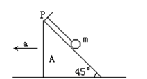1、选择题 如所示,一细线的一端固定于倾角为45°的光滑楔形滑块A的顶端P处,细线的另一端拴一质量为m的小球.当滑块以a=2g的加速度向左运动时,线中拉力T等于多少?