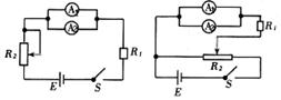 ,I1、I2分别表示通过电流表A1和A2的电流,r1、 r2分别是它们的电阻。