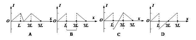 3、选择题 如图所示,等腰三角形内以底边中线为界,左右两边分布有垂直纸面向外和垂直纸面向里的等强度匀强磁场,它的底边在x轴上且长为2L,高为L.纸面内一边长为L的正方形导线框沿x轴正方向做匀速直线运动穿过匀强磁场区域,在t=0时刻恰好位于图中所示位置.以顺时针方向为导线框中电流的正方向,在下面四幅图中能够正确表示电流-位移(