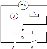 (2)某电流表mA的量程为I0=50mA,内阻为r0=50Ω,其表盘刻度线已模糊不清,要重新通过测量来刻画出从零到满刻度的刻度值,有下列器材: