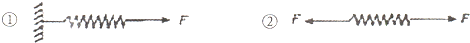 5、选择题 如图所示,两个完全相同的弹簧称都处于水平位置,它们的右端受到大小皆为F的水平拉力作用,而左端的情况不相同:①中弹簧的左端固定在墙上;②中弹簧的左端受大小也为F的水平拉力作用.以l1、l2分别表示①、②中两个弹簧的伸长量,则有( )