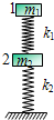 端,红表笔接 端时,指针偏转角较大,然后黑、红表笔反接指针偏转角较小,说明??(填“ ”或“ ”)端是二极管正极。(3)某同学利用如图甲所示的装置测量某一弹簧的劲度系数,将该弹簧竖直悬挂起来,在自由端挂上砝码盘。通过改变盘中砝码的质量,测得6组砝码的质量 和对应的弹簧长度 ,画出 一 图线,对应点已在图上标出,如图乙所示。(重力加速度 )①采用恰当的数据处理,该弹簧的劲度系数为? 。(保留3位有效数字) ②请你判断该同学得到的实验结果与考虑砝码盘的质量相比,结果?。(填“偏大”、“偏小”或“相同”) ![]() ![]() 2、选择题 如图所示,两个完全相同的匀质光滑小球,静止在内壁光滑的半球形碗底,两球之间相互作用力的大小为P,每个小球对碗的压力大小均为F2若两小球质量不变,而半径均减小为原来、的一半,则 3、选择题 如图所示,劲度系数为k1的轻弹簧两端分别与质量为m1、m2的物块1、2拴接,劲度系数为k2的轻弹簧上端与物块2拴接,下端压在桌面上(不拴接),整个系统处于平衡状态.现施力将物块1缓缦地竖直上提,直到下面那个弹簧的下端刚脱离桌面,在此过程中,物块1的重力势能增加了( )