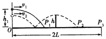 (1)若球在球台边缘O点正上方高度为h1处以速度v1水平发出,落在球台的P1点(如图实线所示),求P1点距O点的距离x;