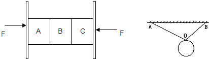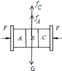 5、填空题 (1)如图,三块相同砖被压在两竖直方向的木板之间,设每块砖的重力为G,则A与左板间的摩擦力大小为______,A与B之间的摩擦力大小为______.