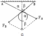 由几何关系得知:α>β,则在力图中,可得AO绳受的力FA小于BO绳受的力FB.当重力逐渐增大,BO绳先达到最大拉力,BO绳先断.