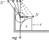 再对A和B整体受力分析,受到总重力G、地面支持力FN,推力F和墙壁的弹力N,如图