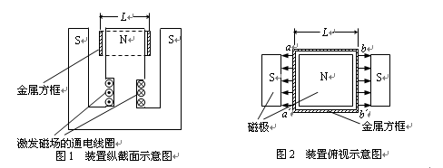 4、计算题 质量为M,电阻为R的薄金属条制成边长为L的闭合正方形框abb?a?。如图所示,金属方框水平放在磁极的狭缝间,方框平面与磁场方向平行。设匀强磁场仅存在于相对磁极之间,其他地方的磁场忽略不计。可认为方框的aa?边和bb?边都处在磁极间,极间磁感应强度大小为B。方框从静止开始释放,其平面在下落过程中保持水平(不计空气阻力)