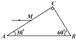 3、填空题  如图所示,直角三角形ABC为一棱镜的横截面,∠A=30°,棱镜材料的折射率n= 。在此截面所在的平面内,空气中的一条光线平行于底边AB从AC边上的M点射入棱镜,经折射射到AB边。光线从AC边进入棱镜时的折射角为___________,试判断光线能否从AB边射出,___________(填“能”或“不能”)。