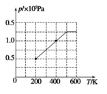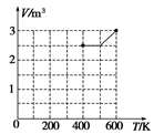 (2)由V-T图知,400K到500K为等容变化,在P-T图上为过原点的倾斜直线,图像见答案中的图,500K-600K为等温变化,在P-T图上为平行横轴的直线。