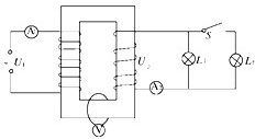 4、简答题 如图所示,理想变压器原线圈中输入电压U1=3300V,副线圈两端电压U2为220V,输出端连有完全相同的两个灯泡L1和L2,绕过铁芯的导线所接的电压表V的示数U=2V.求: