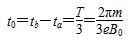 设a、c到达y轴时间差为t0,其中它们离开磁场后到达y轴时间是相等的,在磁场区中a转过30°圆心角,时间