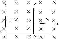 3、选择题  在磁感应强度为B、方向如图所示的匀强磁场中,金属杆PQ在宽为L的平行金属导轨上以速度v向右匀速滑动,PQ中产生的感应电动势为E1;若磁感应强度增为2B,其它条件不变,所产生的感应电动势大小变为E2,则E1与E2之比及通过电阻R的感应电流方向为( ? )