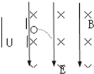 5、选择题 放射源发出的α粒子(氦原子核)经电压为U的加速电场加速后进入正交的匀强电场E和匀强磁场B中,电场方向向下,磁场方向向内,如图所示,发现离子向下偏转,要使离子沿直线通过磁场,可以( )