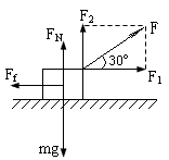 2、计算题 质量为20kg的物体放在水平地面上,现用与水平方向成30°角,大小为100N的拉力F向右拉它,如图所示,若物体沿地面做匀速直线运动,取g=10m/s2,求: