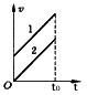 4、选择题 如图所示,可以表示两个做自由落体运动的物体同时落地的速度-时间图象的是(t0表示落地时间)
