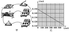②用替代法测毫安表内电阻的电路如图甲所示.器材:待测毫安表A(量程0~10mA,内阻RA约为30Ω);毫安表A′(量程30mA);电阻箱R1(0~9999Ω);滑动变阻器R2(0~500Ω);电源(E=3V,r约为1~2Ω).