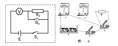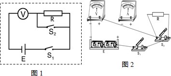 (2)电压表与定值电阻串联,开关S2与定值电阻并联,实验电路图如图1所示;