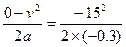 火车的速度v="54" km/h="15" m/s,从刹车到停止做匀减速直线运动的时间