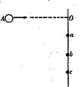 4、选择题 从竖直墙的前方A处,沿AO方向水平发射三颗弹丸a、b、c,在墙上留下的弹痕如图所示.已知Oa=ab=bc,则a、b、? c三颗弹丸: