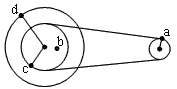 1、选择题 下图为一皮带传动装置,右轮的半径为r,a是它边缘上的一点,左侧是一轮轴,大轮的半径为4r,小轮的半径为2r,b点在小轮上,到小轮中心的距离是r,c点和d点分别位于小轮和大轮的边缘上,若在传动的过程中,皮带不打滑,则有