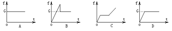 4、选择题 把一重为G的物体,用一个水平的推力F=kt(k为恒量,t为时间)压在竖直的足够高的平整的墙上,如右图所示,从t=0开始物体所受的摩擦力f随t的