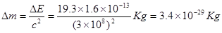 ;核反应放出的能量为8.9MeV×2-0.5 MeV="19.3" MeV,根据质能方程