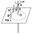 1、选择题 在光滑平面中,有一转动轴垂直于此平面,交点O的上方h处固定一细绳的一端,绳的另一端固定一质量为m的小球B,绳长AB=l>h,小球可随转动轴转动并在光滑水平面上做匀速圆周运动,如图所示,要使小球不离开水平面,转动轴的转速的最大值是( ).