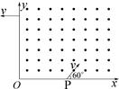 ,0)点,以速度v沿与x轴正方向成60°角射入第一象限内的匀强磁场中,并恰好垂直于y轴射出第一象限。
