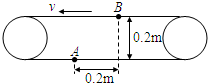 ![]() 参考答案: 本题解析: 本题难度:一般 3、计算题 如图所示,从高为 参考答案:解:(1)依据题意,设小球落在水平面上的水平位移为x 本题解析:略 本题难度:简单 4、简答题 今年国庆,“嫦娥二号”成功发射.已知“嫦娥二号”绕月飞行轨道近似圆形,距月球表面高度为H,飞行周期为T,月球的半径为R,万有引力常量为G.试求: 参考答案:(1)设“嫦娥二号”质量为m, 本题解析: 本题难度:一般 5、简答题 两个直径均为0.2m的轮逆时针方向匀速转动,带动传送带匀速运动.在传送带的水平部分有A、B两个标记点.某时刻A、B位置关系如图所示,A、B之间的水平距离为0.2m,此时有一原先附着在传送带下B点的水滴与B点脱离而落下,最后恰好掉在A点.试求此传送带的传送速度v.