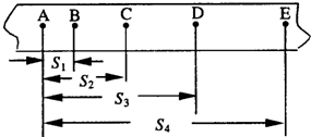 5、填空题 李明同学在利用打点计时器验证自由下落物体机械能守恒的实验中记录的纸带如图所示,图中A、B、C、D、E为相邻的计数点,相邻的计数点间的时间间隔为了,有关距离如图所标.