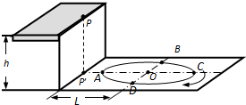4、简答题 水平地面上有一个半径为R的圆形跑道,高为h的平台边缘上P点在地面上P′点的正上方,P′与跑道圆心O的距离为L(L>R),P′AOC各点均在同一水平直线上,如图所示.已知重力加速度为g,空气阻力不计,小车可视为质点.则:
