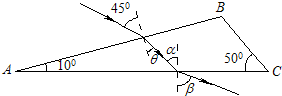 在C点有:n=sin(180°-135°)sin∠BCO,