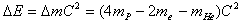 生成一个氦核过程的质量亏损△m=(1.008 7 u+1.007 3 u)×2-4.002 6 u=0.029 4 u