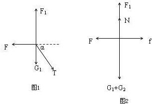 ? 竖直方向:F1=G1+Tsinα,当α减小时,sinα减小,而F1、G1都不变,则绳子拉力T增大.故A正确.