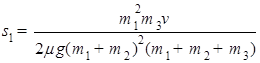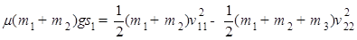 (m1+m2)v11=(m1+m2+m3)v22… ③