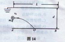 4、计算题 如图所示,水平放置的平行板电容器,原来两板不带电,上极板接地,它的极板长L=0.1m,两板间距离d=0.4 cm,有一束相同微粒组成的带电粒子流以相同的初速度从两板中央平行于极板射入,由于重力作用微粒能落到下板上,已知微粒质量m=2.0×10-6kg,电量q=1.0×10-8C,电容器电容C=1.0×10—6F,取g=10m/s2.试求