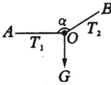 如图所示,重为G的物体用两根绳子0A、OB悬挂,开始时绳OA水平,现将两绳同时顺时针缓慢转过900,始终保持α角大小不变,且物体始终静止,绳OA的拉力为T1,绳OB的拉力为T2,则在此旋转过程中不可能发生的是