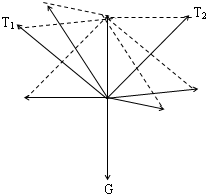 本题解析:分析:以结点O为研究对象,分析受力情况,作出力图,抓住两个绳子拉力T1和拉力T2的合力与重力G大小相等、方向相反,作出在旋转过程中三个不同位置力的合成图,分析T1和T2的变化情况.