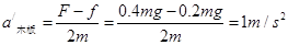 可得木板1s末的速度为v木板= 4m/s, 以木块为对象在水平方向上受到木板对木块的摩擦力f/作用, 由牛顿第二定律可得:
