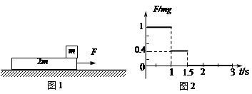 (2) 在1s—1.5s内拉力为0.4mg,以木板为对象在水平方向上受到拉力F和木块对木板的摩擦力f作用,由牛顿第二定律可得: