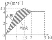 在0~3s内物块相对于木板的距离△s等于木板和物块v-t图线下的面积之差,即图中带阴影的四边形面积,该四边形由两个三角形组成,上面的三角形面积为0.25m,下面的三角形面积为2m,因此△s="2.25" m